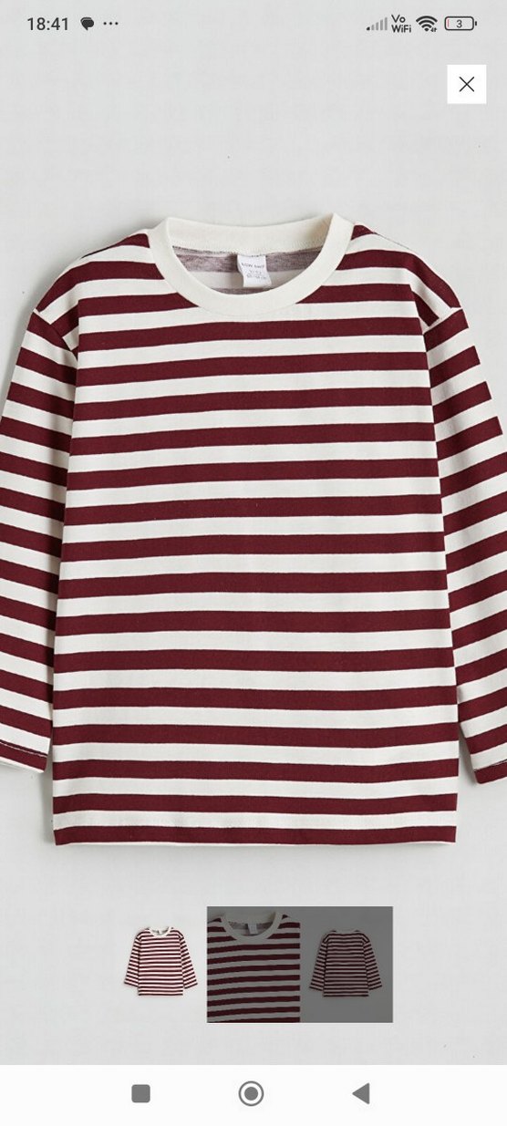 Bordo ve beyaz çizgili, uzun kollu yuvarlak yaka çocuk bluz . Katmanlama için uygun.