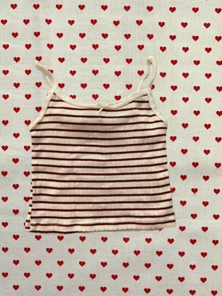 Bordo Çizgili Dantelli İnce Askılı Üst