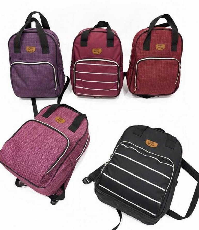 Bordo renkli, çizgili desene sahip kadın sırt çantası, fermuarlı bölmeleriyle günlük ve sokak stiline uygun sentetik kumaştan üretilmiştir.