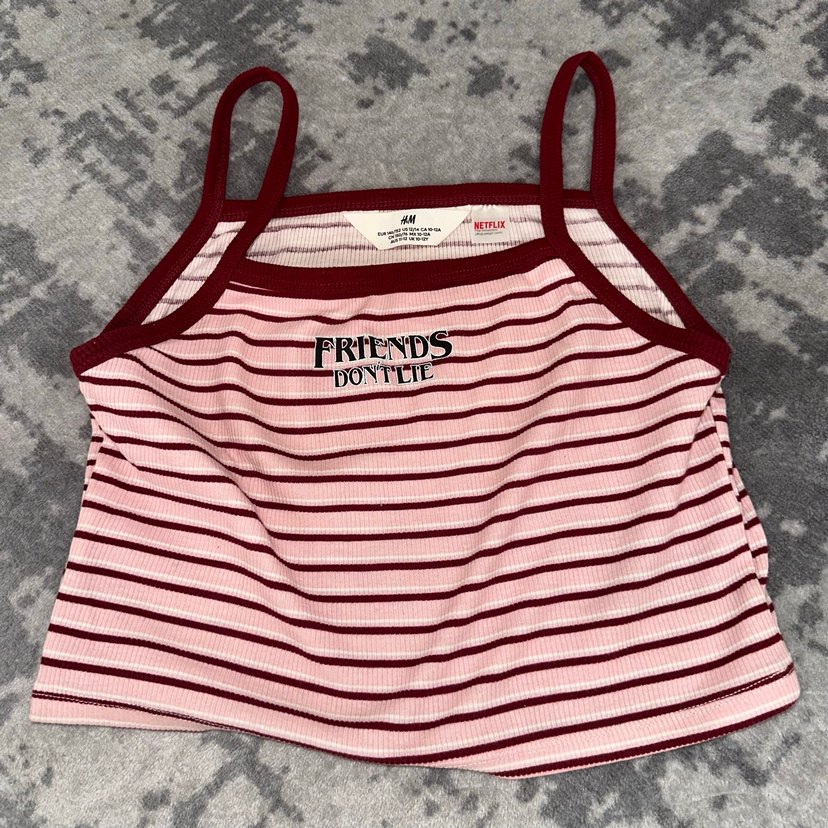 Bordo ve gri çizgili, örme dokulu, pamuklu kadın atlet. Askılı ve baskılı, 'FRIENDS DOYTLIE' yazılı, günlük kullanıma uygun.