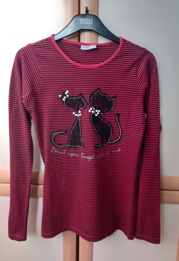 Bordo renkli, uzun kollu, bisiklet yaka kız çocuk tişörtü. Örme kumaştan, baskılı kedi figürüyle trendy ve rahat bir tarz sunar.