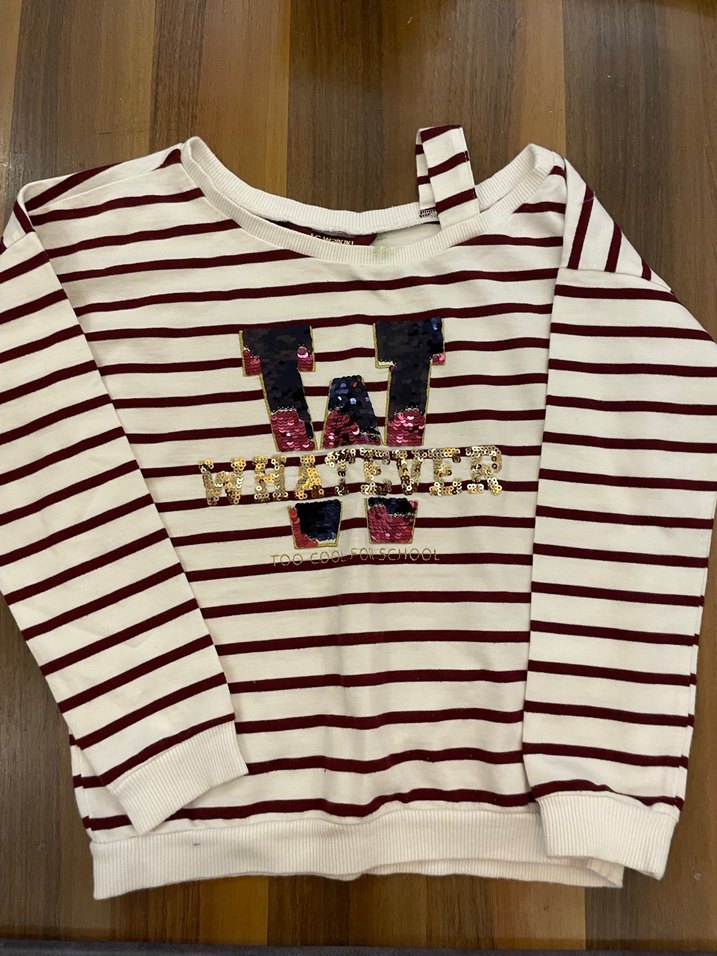 Bordo Çizgili Kız Çocuk Uzun Kollu Tişört