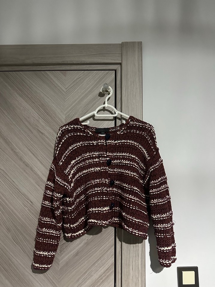 Bordo renkli, uzun kollu ve salaş kesim triko kazak. Bağlama desenli, bisiklet yaka ve normal midi boyda, rahat sokak stili için uygun.