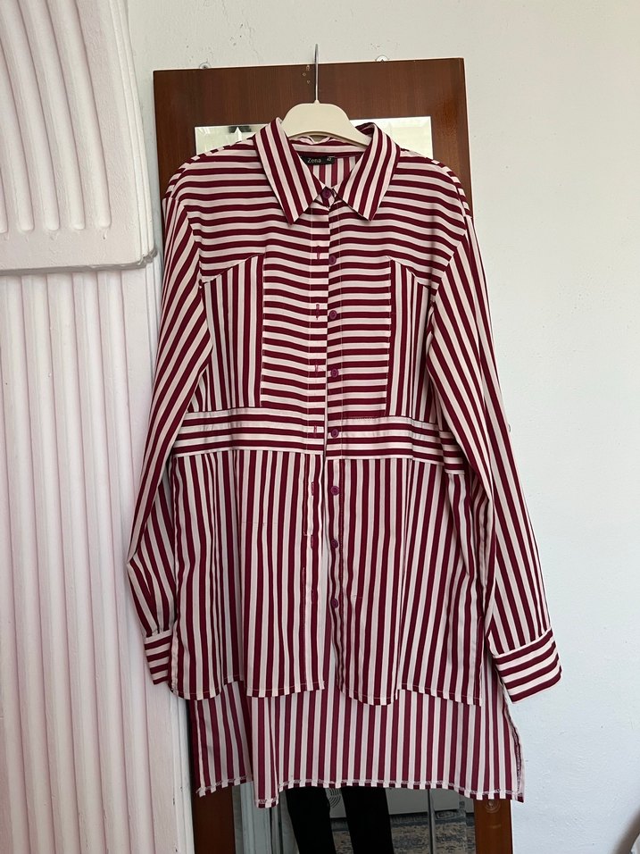 Bordo Çizgili Uzun Kollu Salaş Kadın Gömlek
