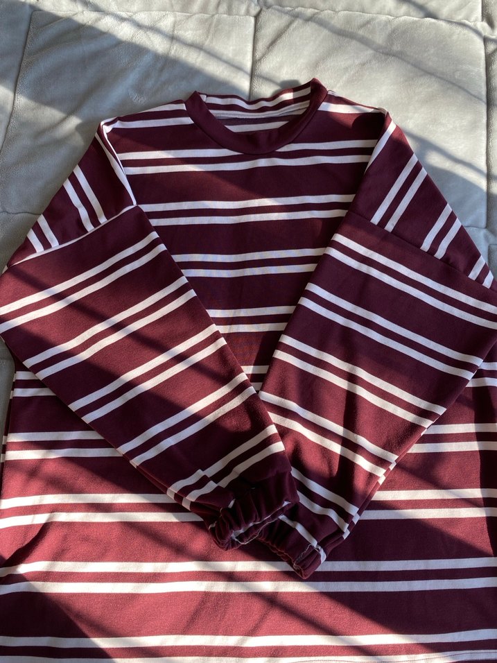 Bordo Çizgili Uzun Kollu Salaş Kadın Kazak