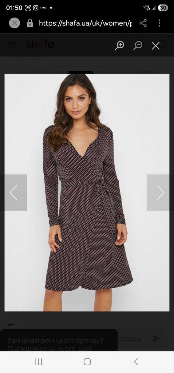 Bordo çizgili, V yakalı ve uzun kollu elbise. hiç giyilmedi etiketi ile duruyor. M beden