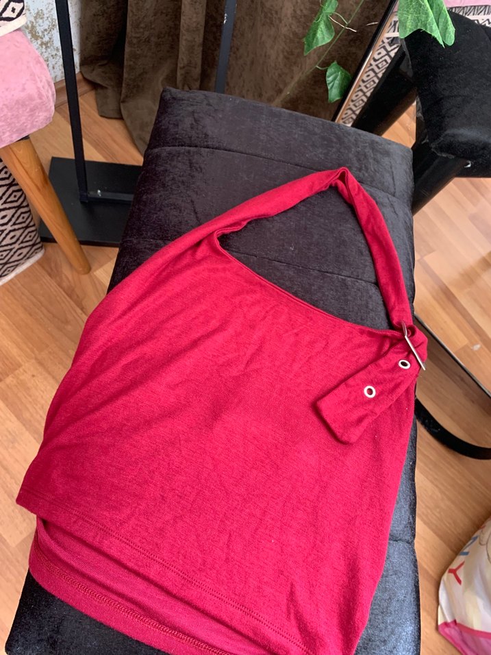 Gri detaylı bordo crop yumuşak kumaş kullanılmıştır. Ayarlanabilir