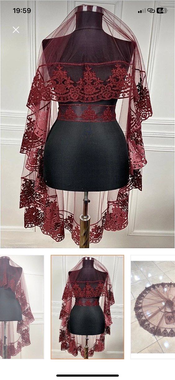 Bordo dantel detaylı, bohem ve gotik tarzda, retro ve hippie görünüme uygun gelin aksesuarı.