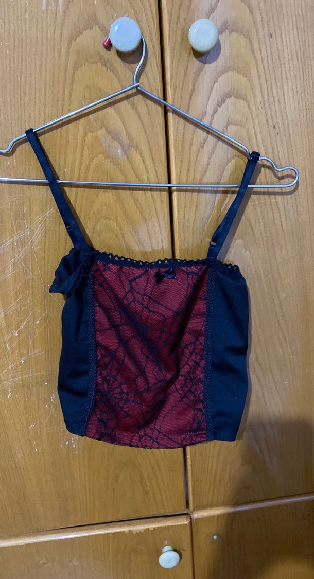 Bordo renkli, dantel detaylı, ince askılı straplez gotik tarza sahip, normal midi boyda, vücuda oturan tekstil kumaştan büstiyerdir.