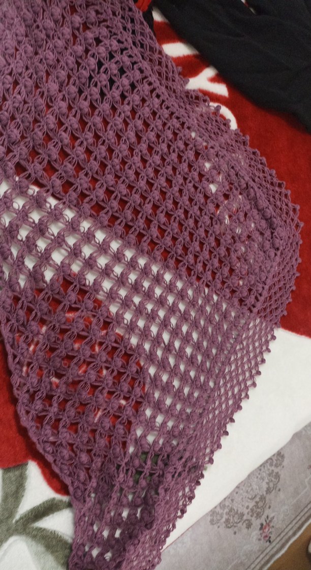 Bordo renkte, dantel detaylı triko kadın şal. Bohem ve retro tarzına uygun, yumuşak dokusu ile sıcaklık ve rahatlık sağlar.