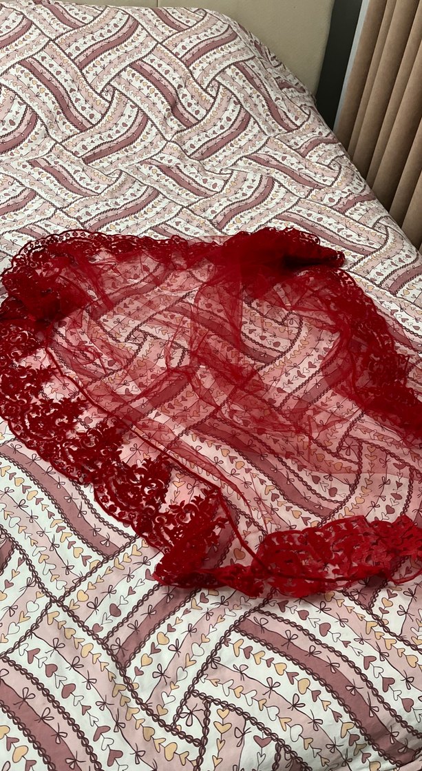 Bordo renkte, dantel detaylı tekstil kadın kına örtüsü Bohem tarzı yansıtan, retro ve hippie dokunuşlar için uygun. Tertemiz 10 dk kullandım sadece