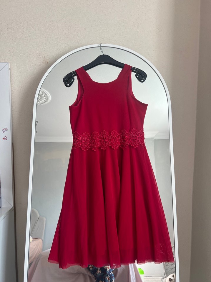 Bordo Dantel Detaylı Midi Abiye Elbise