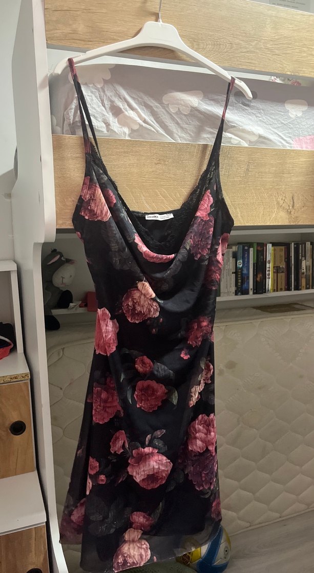 Bordo tonlarında dantel detaylı, V yakalı ve kolsuz, midi boy oturan elbise. Cesur Parisli gotik tarzıyla romantik akşamlar için ideal. Bershkadan almıştım bir kere giydim