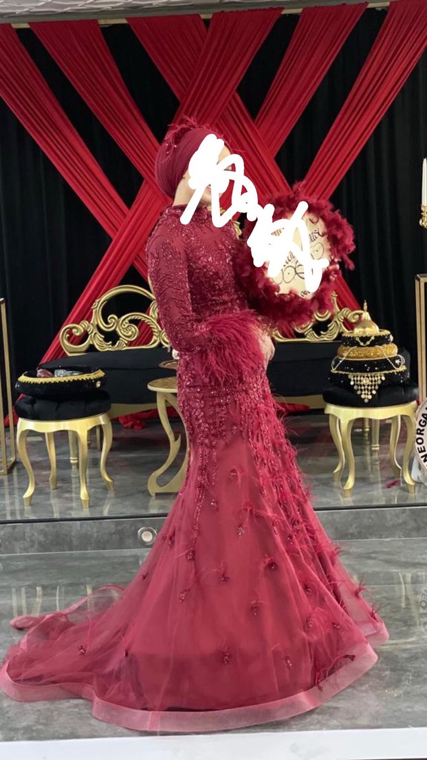 36-38-40 bedene uyar arkası iplidir. Bordo renktir. Aksesuarı ve tarlatanıyle gönderilecektir.