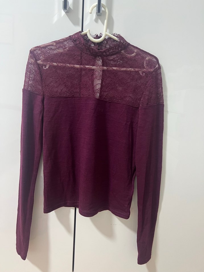 Bordo Dantel Detaylı Yüksek Yaka Kadın Kazak