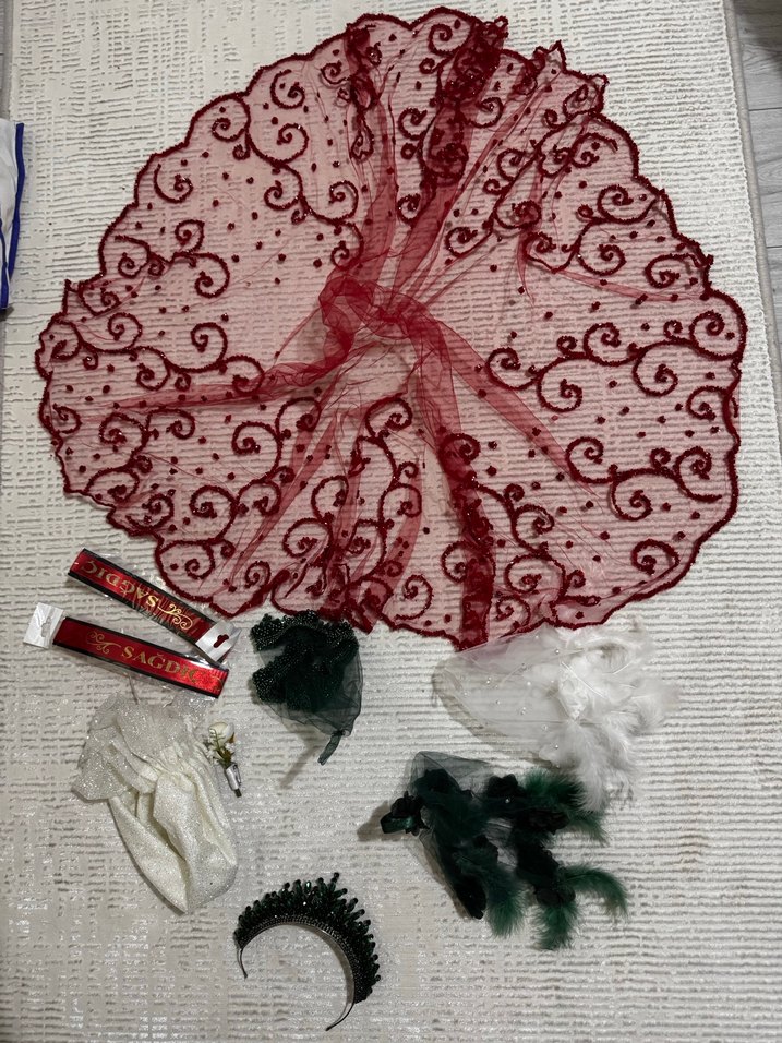 Bordo dantel işlemeli tül duvak ve gotik tarzda gelin aksesuarları; eldivenler, taç ve kurdeleler içerir. Avant-garde moda tutkunları için ideal. Duvak gelin çiçeği mendil gelin tacı