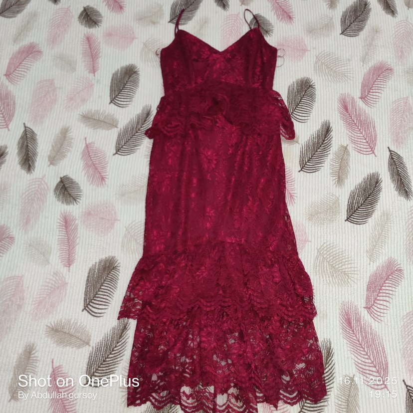 Bordo renkli, straplez ve dantel detaylı, vintage esintili uzun abiye elbise. Düğün ve özel günler için klasik ve bohem tarzda, vücuda oturan kesim.