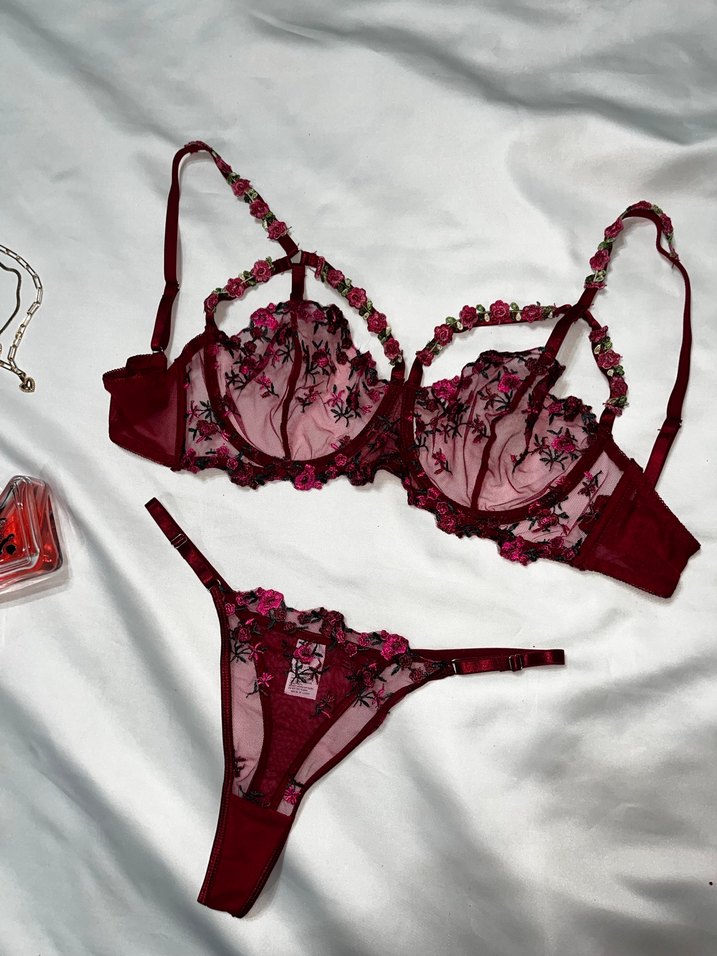 Bordo dantelli bralet takımı. Ayarlanabilir askılı. XL beden.