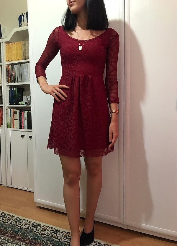 Bordo dantelli elbise