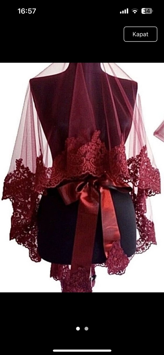 Koyu bordo renkte, dantel detaylı gelin duvagı klasik gotik zarafeti yansıtıyor. ️