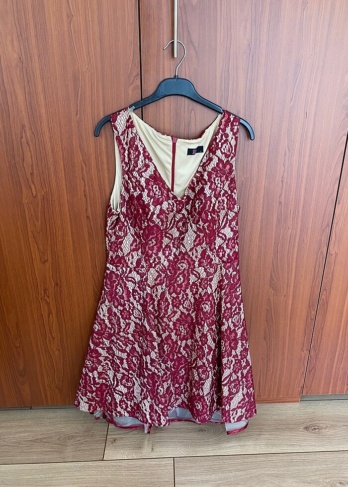 Bordo dantelli kısa abiye Boy uzunluğu 90 cm
