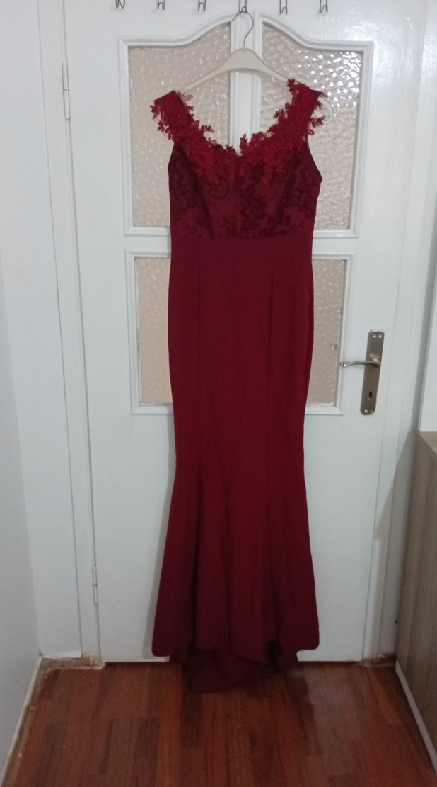 Bordo Dantelli Uzun Abiye Elbise