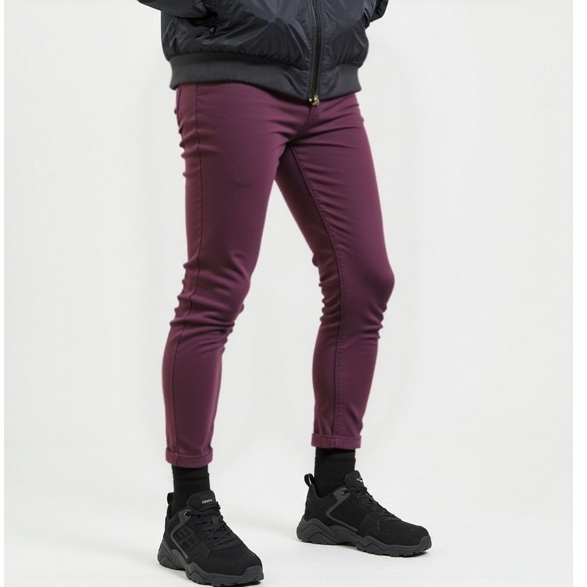 Bordo renkli, dar kesim ve normal boyda erkek spor pantolonu. Sentetik kumaştan üretilmiş, günlük kullanıma uygun rahat ve şık bir tasarım.