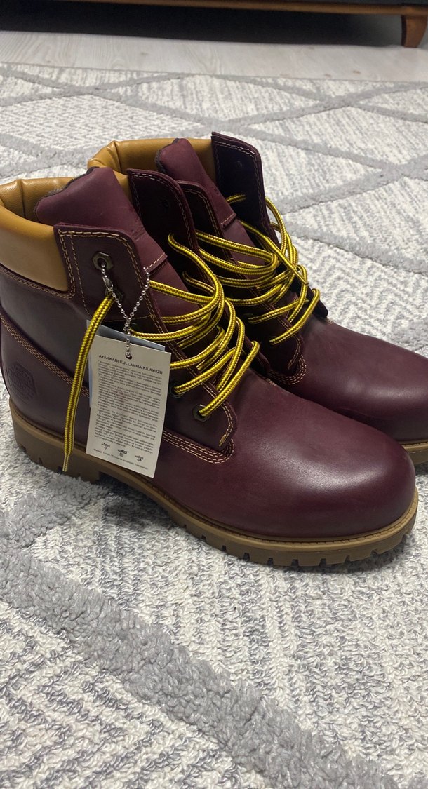 Bordo deri bağcıklı botlar, dolgu topuklu ve rahat sokak stili için uygun, günlük kullanıma uygun şık bir modeldir.