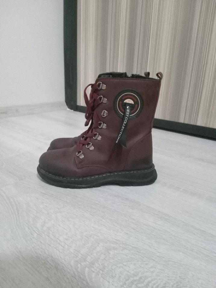 Bordo Deri Bağcıklı Yüksek cocuk Bot