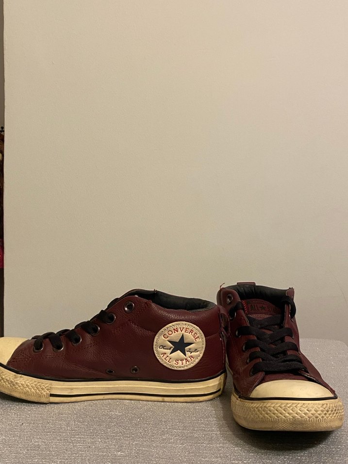 Bordo deri Converse stiletto topuklu spor ayakkabı, minimalist ve zahmetsiz şıklık sunar, günlük kullanım için uygundur. ⭐