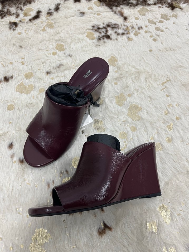 Bordo Deri Dolgu Topuk Kadın Terlik