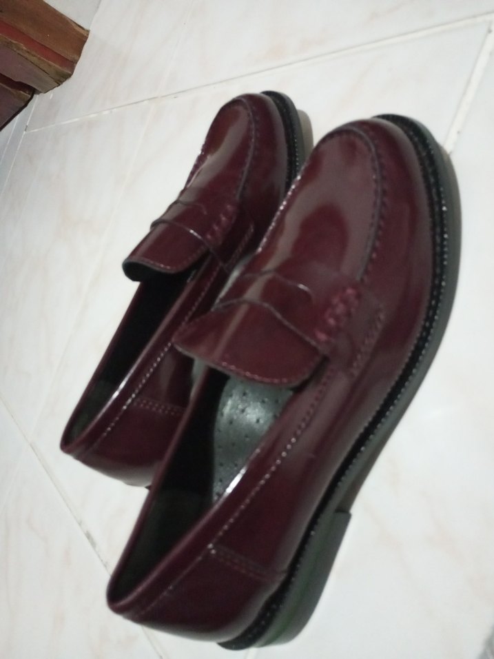 Bordo renkte, deri malzemeden yapılmış, tokalı klasik erkek çocuk loafer ayakkabılar. Düz ve desen içermeyen tasarıma sahiptir.