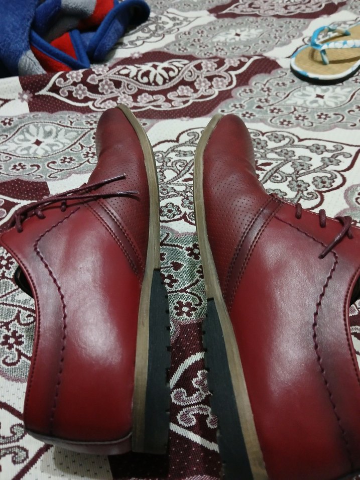 Bordo parlak deri, bağcıklı erkek klasik ayakkabı. Günlük kullanıma uygun, rahat ve şık tarzda.