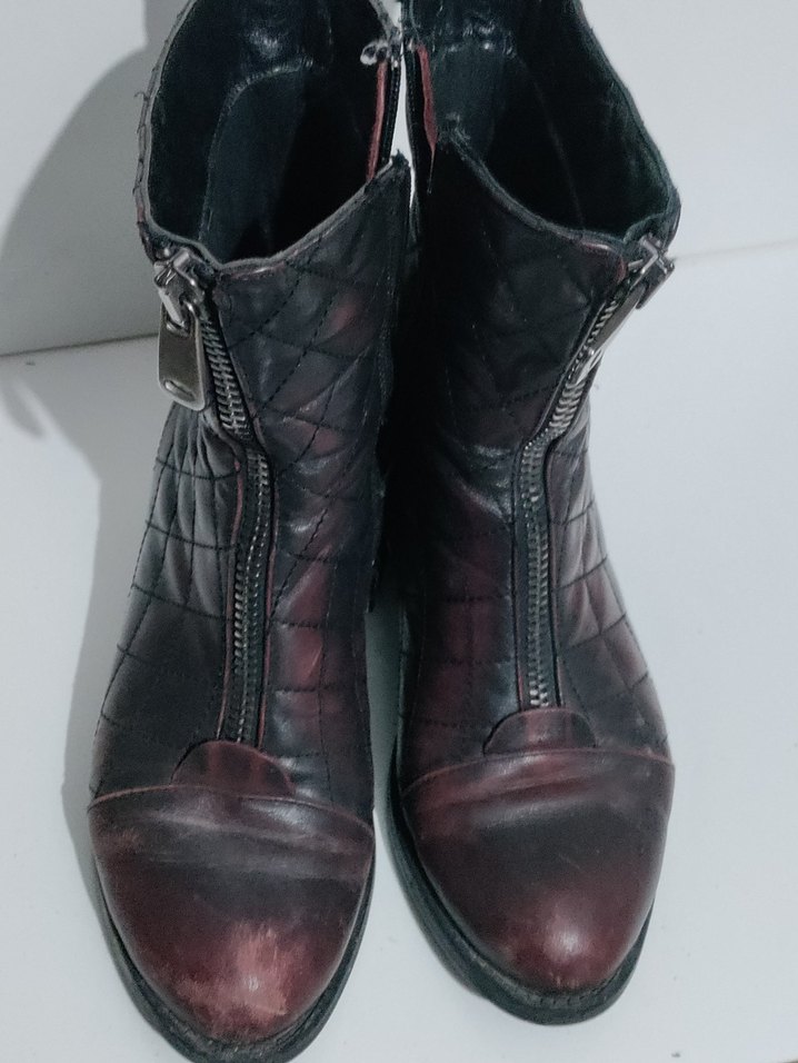 Bordo deri, blok topuklu ve ön fermuarlı bot. Günlük kullanıma uygundur. Herhangi bir hatası deformesi veya yırtığı yoktur.