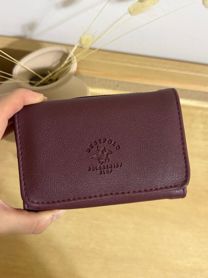 Bordo deri kadın cüzdan, fermuarlı kapama ve baskılı logo detayına sahiptir. Günlük kullanım için uygundur, sokak modası tarzında. Ürün hediye geldi hiç kullanılmadı