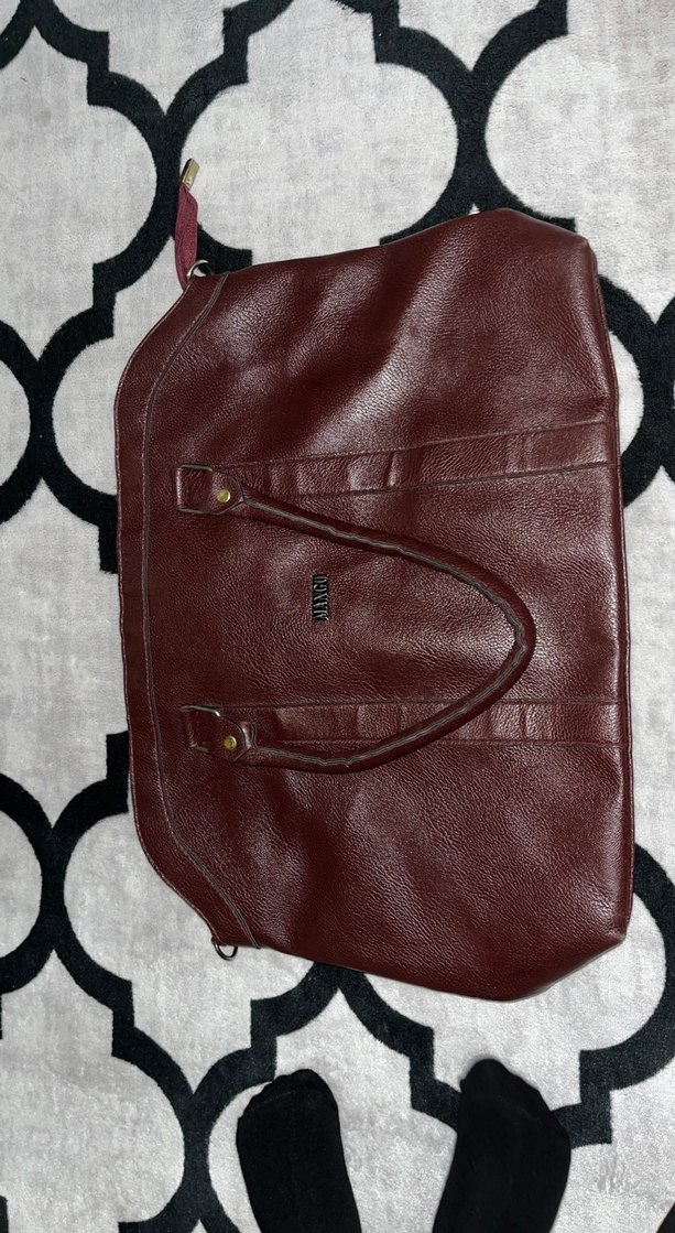 Bordo deri kadın çantası, fermuarlı ve desen içermeyen minimalist tasarıma sahiptir. Günlük sokak stiline uygundur ve sağlam saplarla desteklenmiştir.