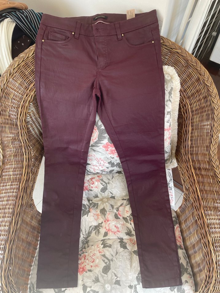 Bordo Deri Görünümlü Kadın Pantolon