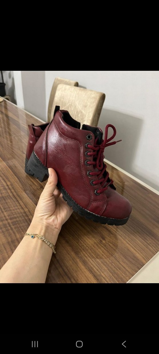 Bordo deri kadın bot, kalın topuklu ve tokalı detaylıdır. Sokak stiline uygun, günlük kullanıma elverişli unpatterned tasarım.