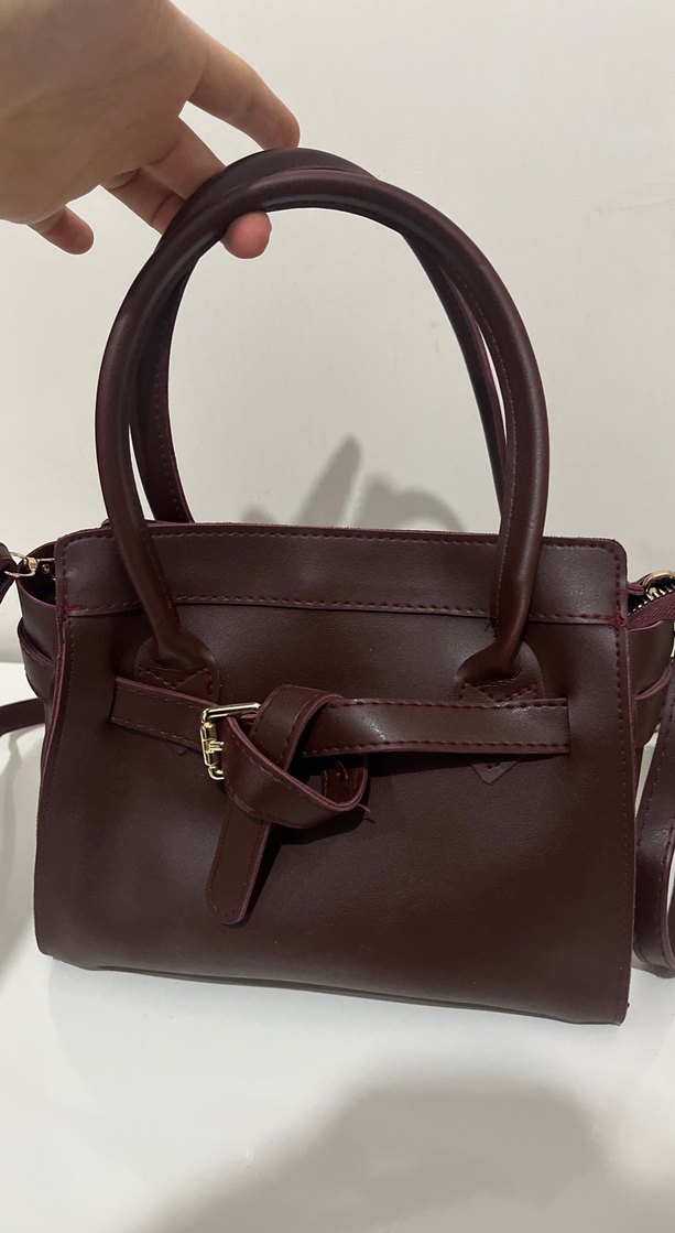 Bordo renkli, deri malzemeden üretilmiş, tokalı detaylı, minimalist tarza sahip kadın çantasıdır. Modern klasik stilde, günlük kullanıma uygundur.