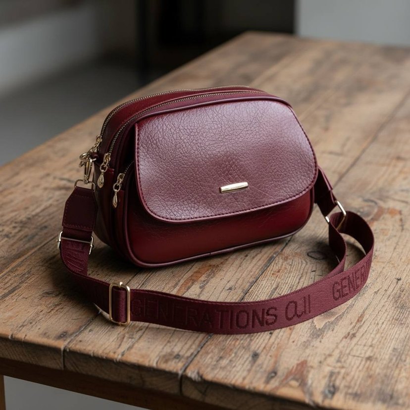 Parlak bordo deri kadın çanta, tokalı kapak ve ayarlanabilir askıyla minimalist modern klasik tasarım sunar. Günlük kullanıma uygundur.