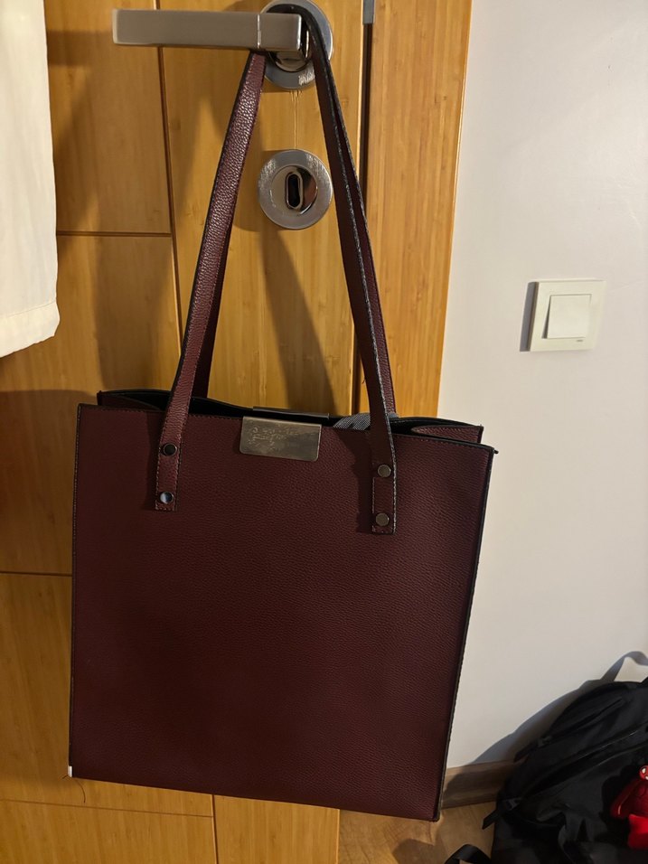 Bordo deri çanta, tokalı detaylar ve parlak yüzeyle minimalist, çağdaş bir tarz sunar. Baskılı deseni klasik zarafet katıyor, günlük kullanım için uygun.