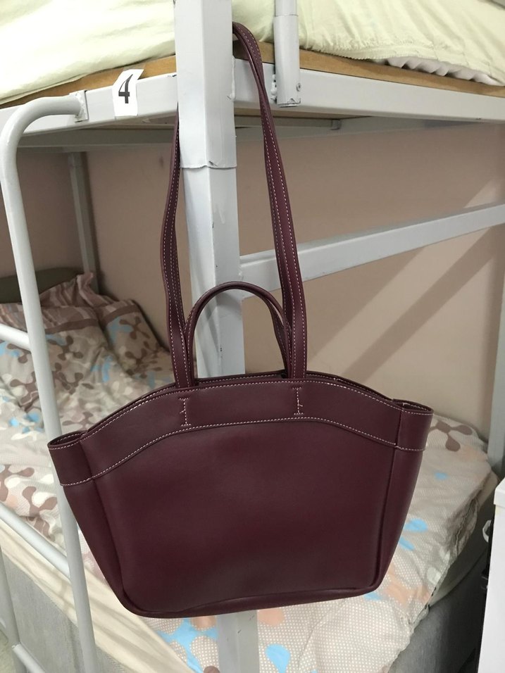 Bordo deri kadın çanta, minimalist ve desensiz tasarıma sahip, uzun saplı ve kompakt yapısıyla günlük kullanım için uygundur. Zahmetsiz şıklık sunar.