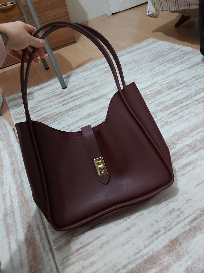 Bordo deri kadın çanta, parlak yüzey ve tokalı hediye geldi hic kullanilmadi