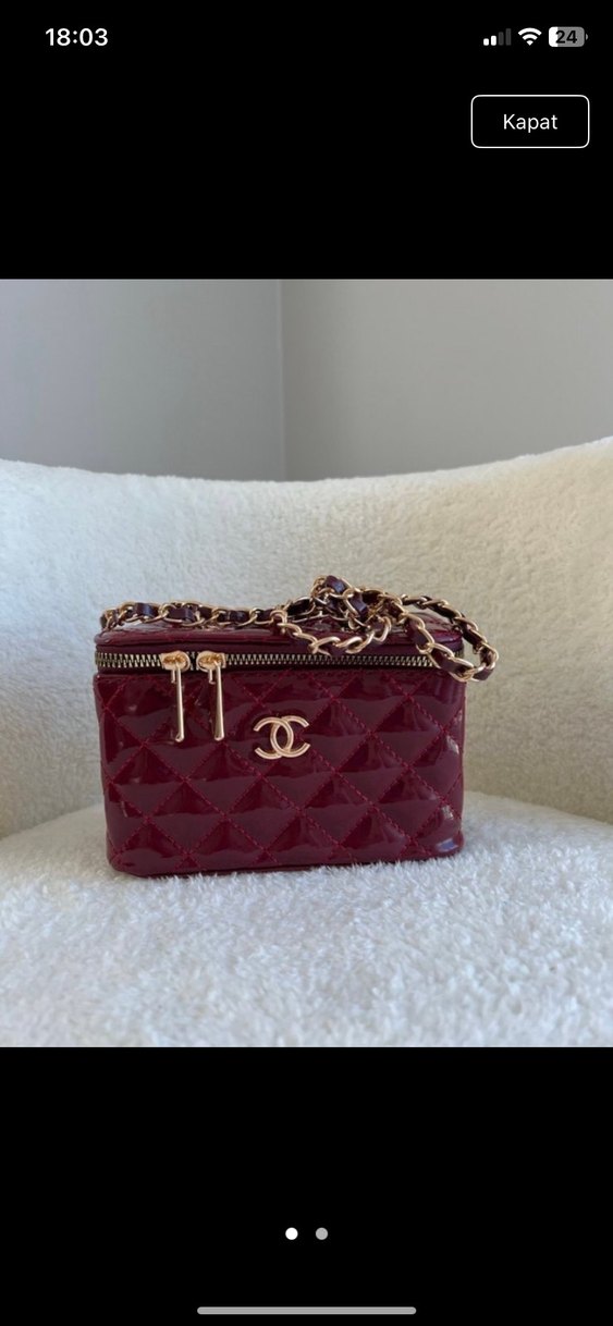 Bordo deri çanta, baskılı desene ve fermuarlı kapanışa sahiptir. Zincir askısı ile klasik zarafeti ve Paris etkisini taşır.