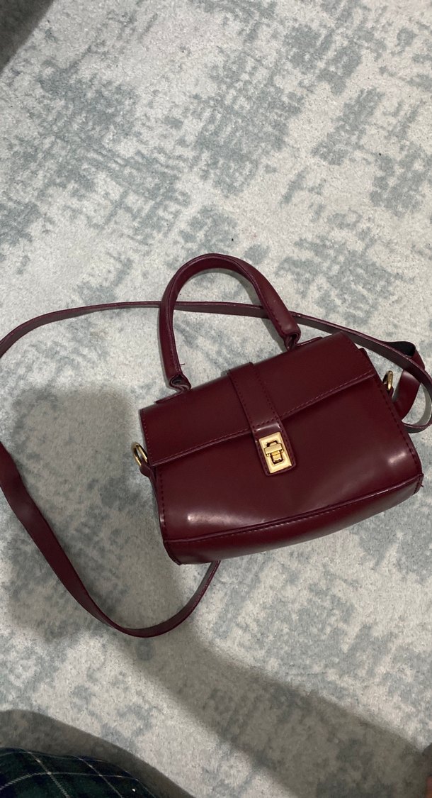 Bordo deri kadın çanta, tokalı kapama ve modern klasik tasarıma sahiptir. Günlük kullanıma ve Paris tarzına uygundur.