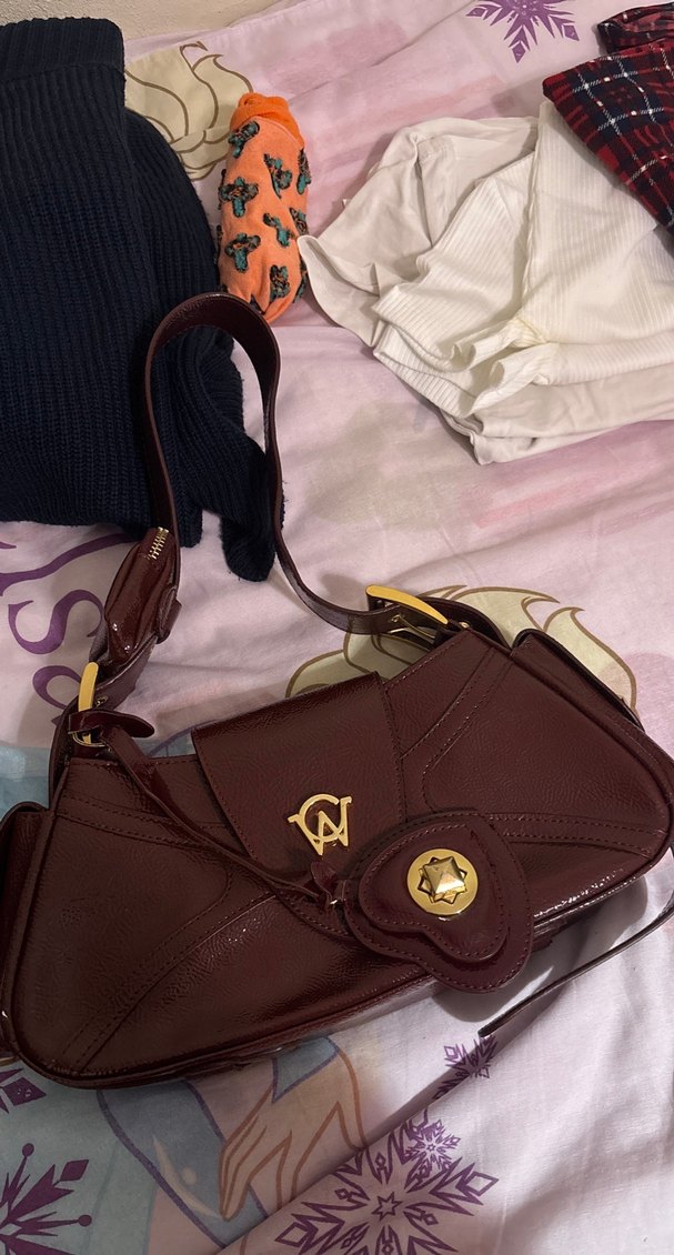 Bordo deri, tokalı ve baskılı detaylara sahip Parisian tarzında günlük kullanıma uygun kadın çantası. ORJINAL
