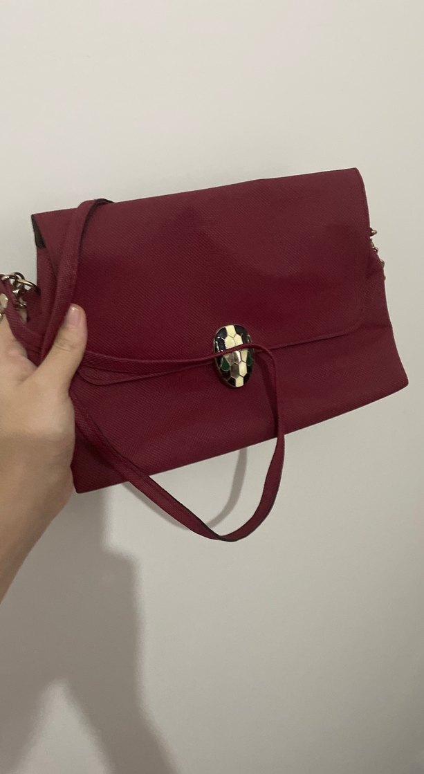 Bordo Deri Kadın Çanta Yılan Desenli Tokalı