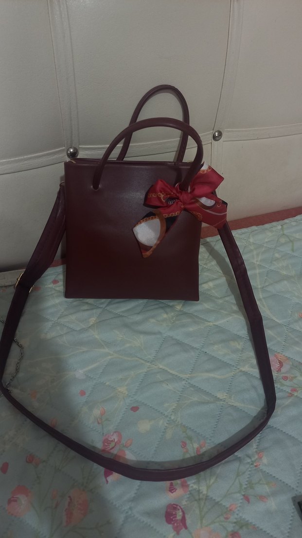 Bordo deri kadın el çantası, fiyonk detaylı ve çift saplıdır. Günlük kullanıma uygun, klasik ve çağdaş bir tarz sunar.
