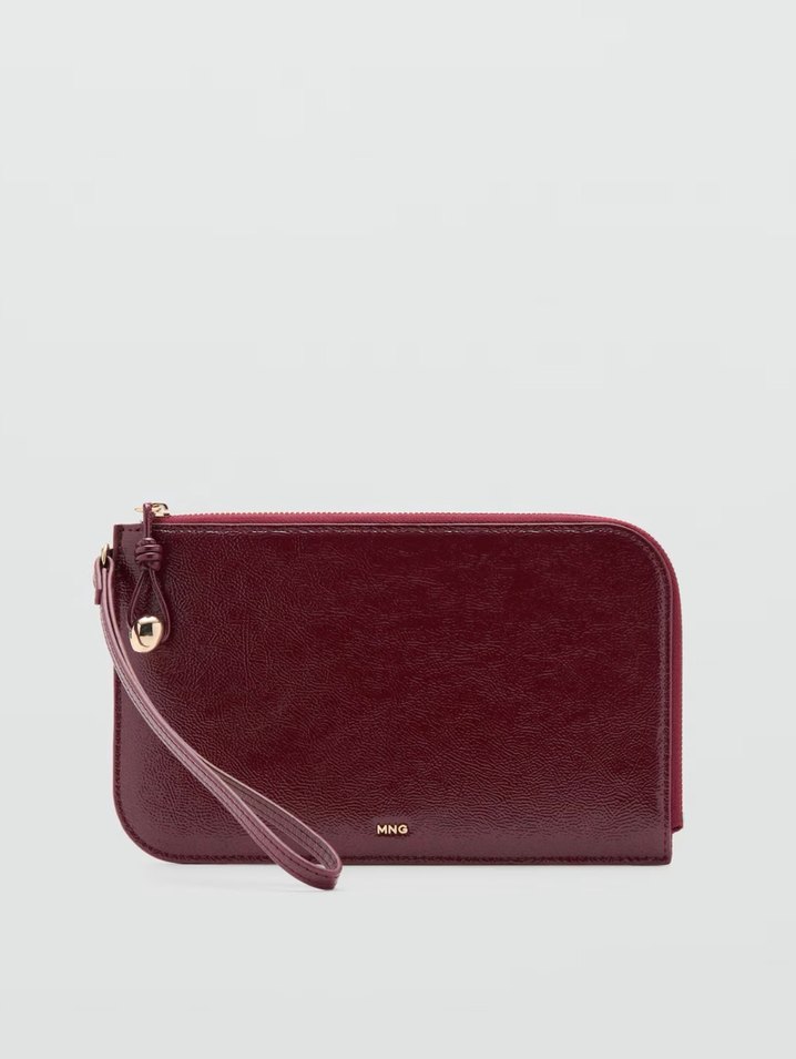 Parlak bordo deri fermuarlı portföy cüzdan, minimalist ve modern klasik tarzı günlük kullanım için birleştirir.