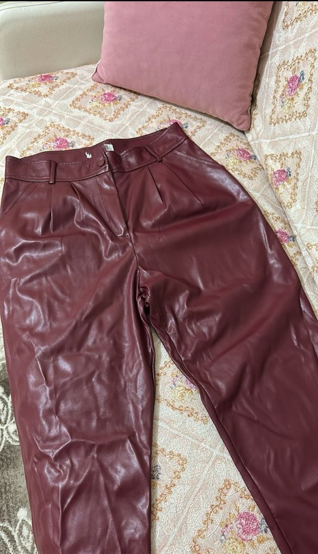 Bordo deri, bol kesim, bağcıklı detaylı kadına özel midi pantolon, bohem tarzıyla günlük kullanıma uygun.Yumşacık ve şık.